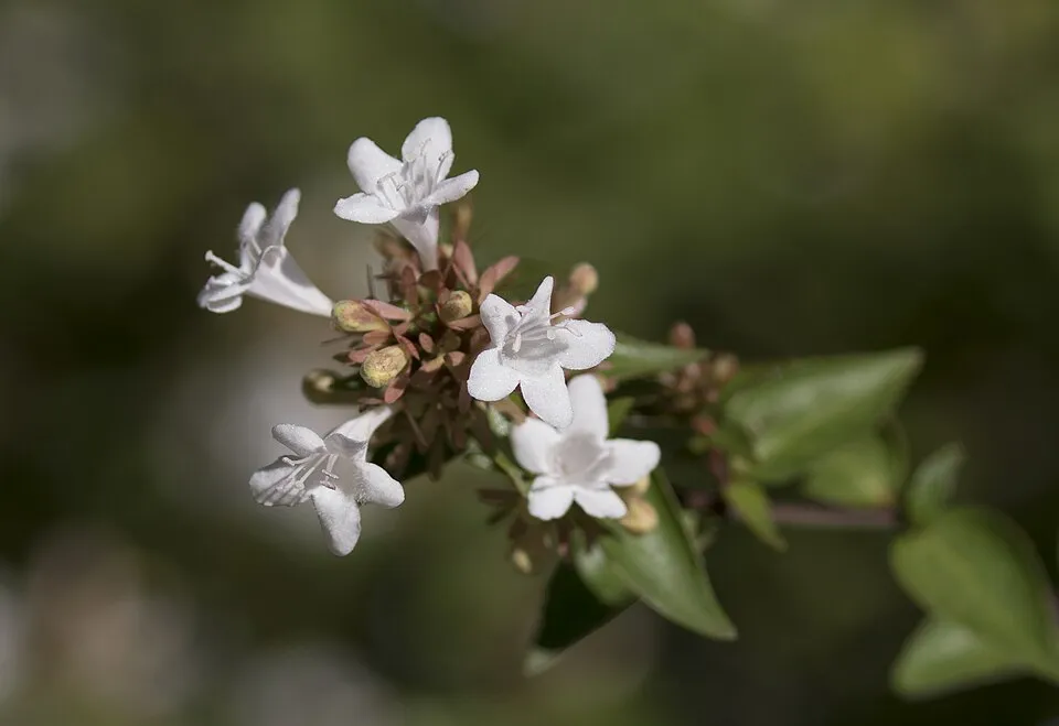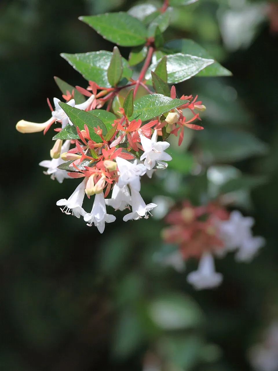 1–1,5 m magas, sűrű, kompakt habitusú, félörökzöld abélia. Lombja fényes zöld, hűvösebb időben bronzosodhat, így a bokor egész szezonban dekoratív. Nyár elejétől hosszan virágzik, fehér (rózsaszínes árnyalatú) illatos virágai tömegesen nyílnak. Napos–félárnyékos helyet, jó vízáteresztő, humuszos talajt kedvel; a túl nedves, pangó vizes közeget kerülni kell. Kora tavasszal vagy virágzás után formára igazítható, metszést jól visel.