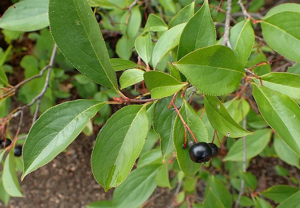 1–2 m magas, lombhullató cserje (fekete berkenye), amely több évszakban is díszít. Tavasszal fehér virágai nyílnak, nyár végén–ősszel fényes fekete bogyókat érlel (ehető, feldolgozásra kiváló), lombja pedig ősszel látványosan vörös-narancs színekre vált. Napos fekvésben terem a legjobban, de félárnyékban is megél. Talajban nem válogat, enyhén savanyú vagy semleges, közepesen nedves talajban fejlődik a legszebben; a tartósan vízállásos talajt nem kedveli. Jó fagytűrésű és könnyen gondozható.