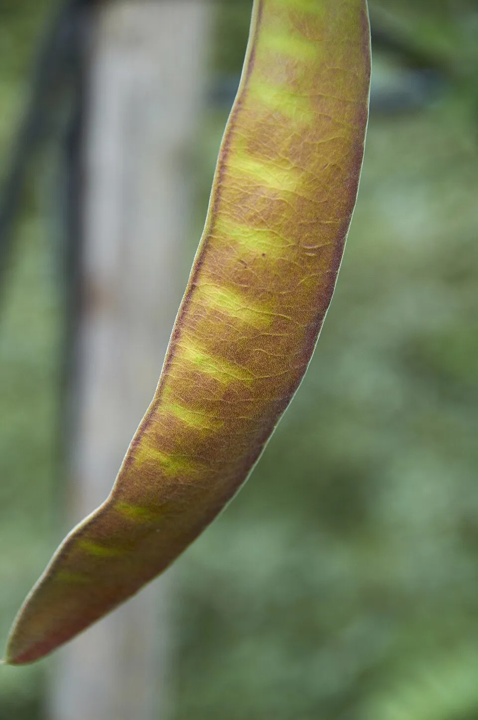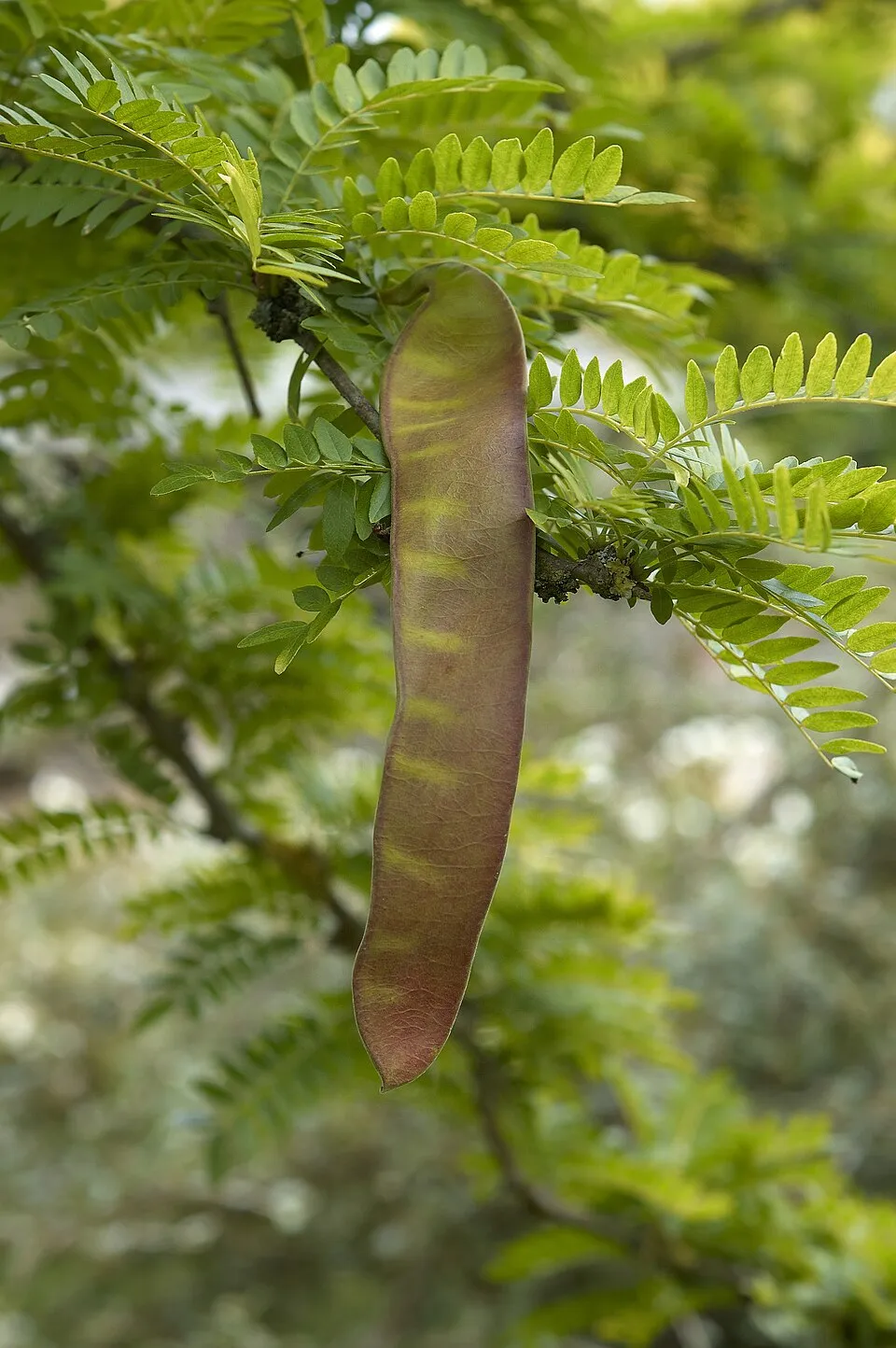 10-15 m magas, széles kúpkoronájú, laza ágrendszerű fa. Tövistelen. Levele 20 cm-es, egyszeresen vagy kétszeresen szárnyasan összetett, aranysárga, később világoszöld, ősszel barnás. Virágai nem feltűnőek, kicsi fehérek, rövid fürtökben júnisuban nyílnak. Fény- és melegigényes, várostürő, szép színe miatt parkfának kitünő.