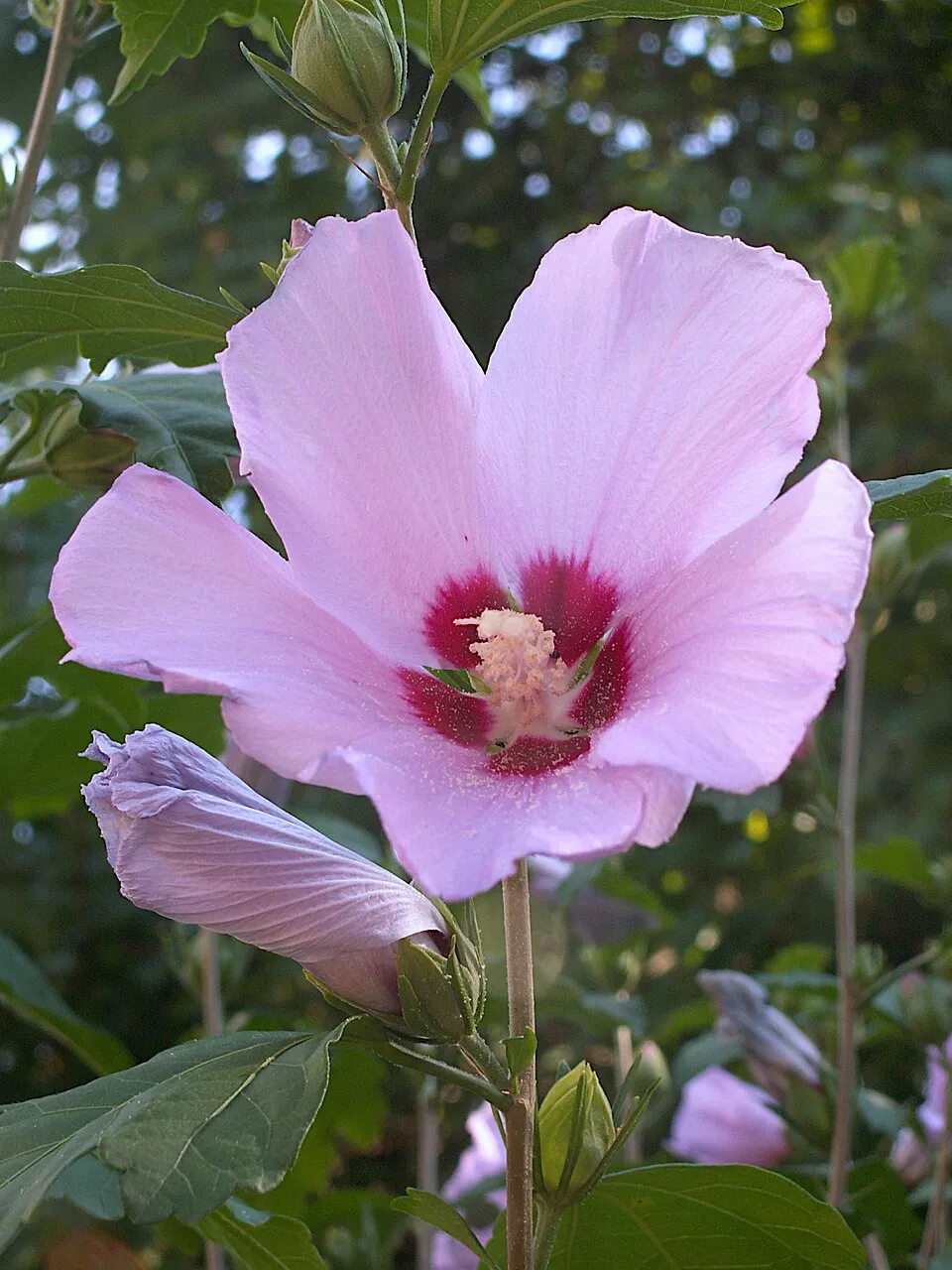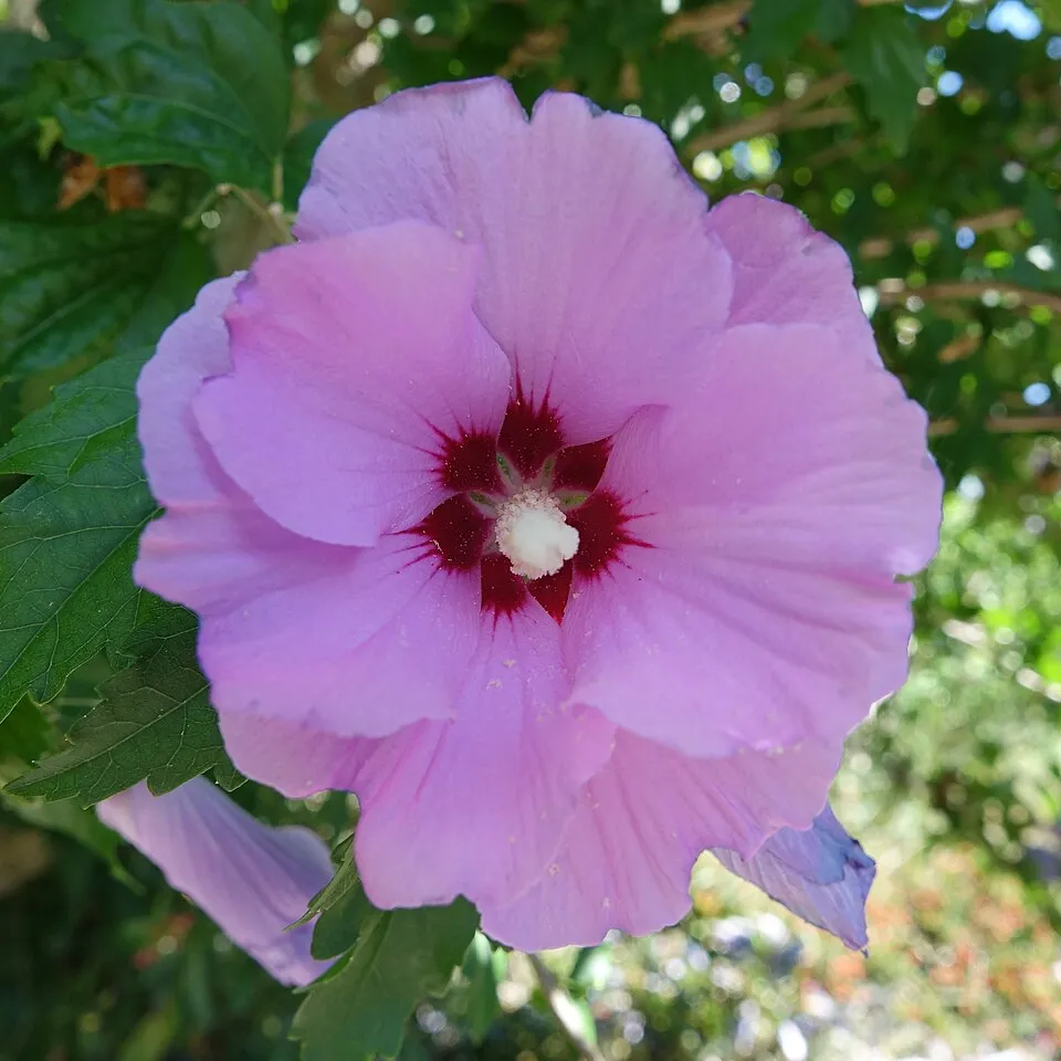 Rózsaszín teltvirágú mályvacserje, bordó torokkal / Hibiscus syriacus 'Carneus Plenus'