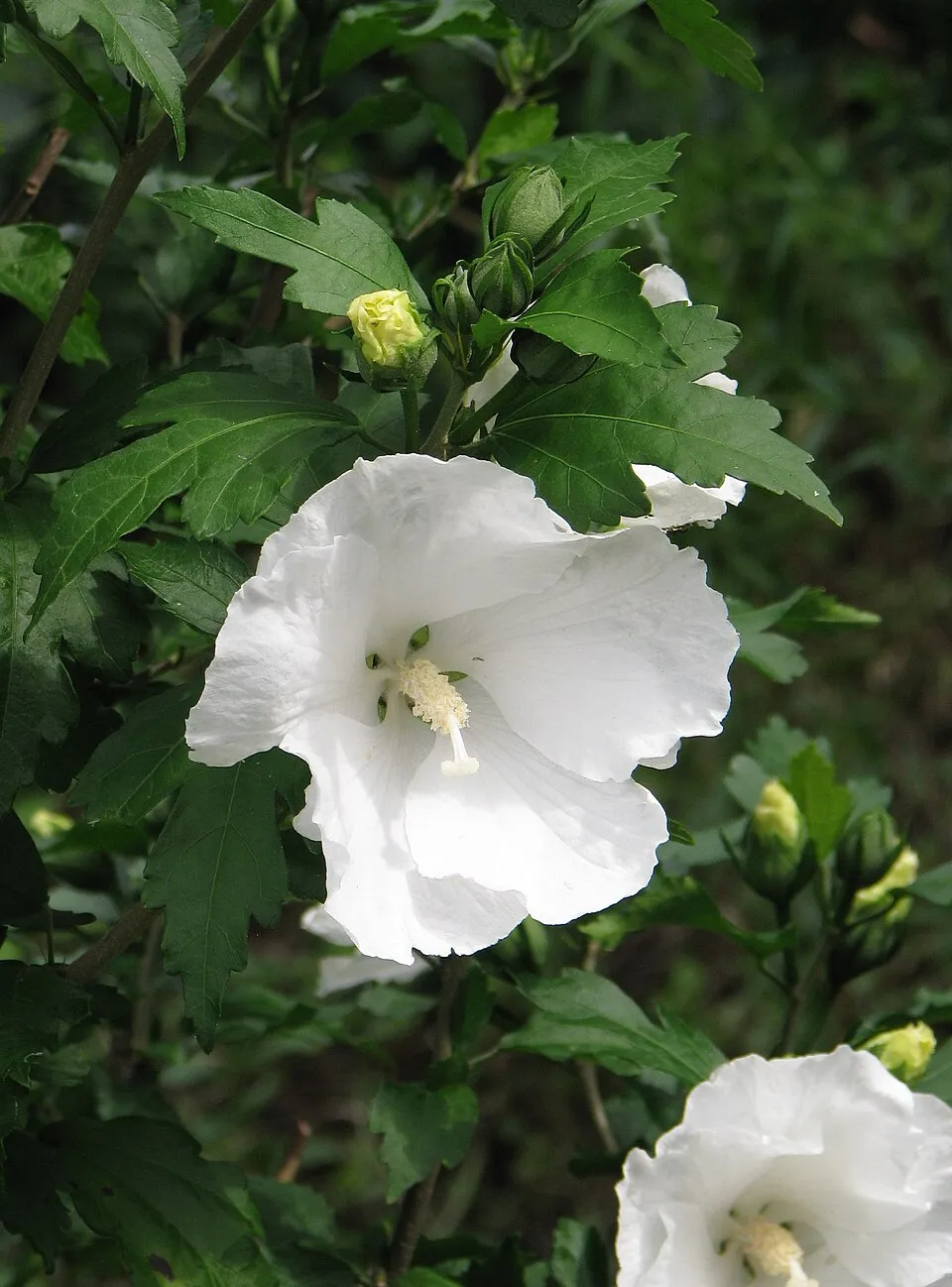Fehér virágú mályvacserje / Hibiscus syriacus 'Diana'