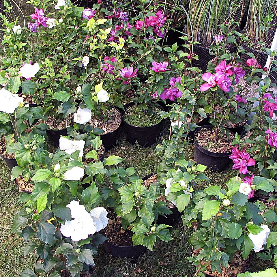 Rózsaszín virágú mályvacserje, bordó torokkal / Hibiscus syriacus 'Hamabo'