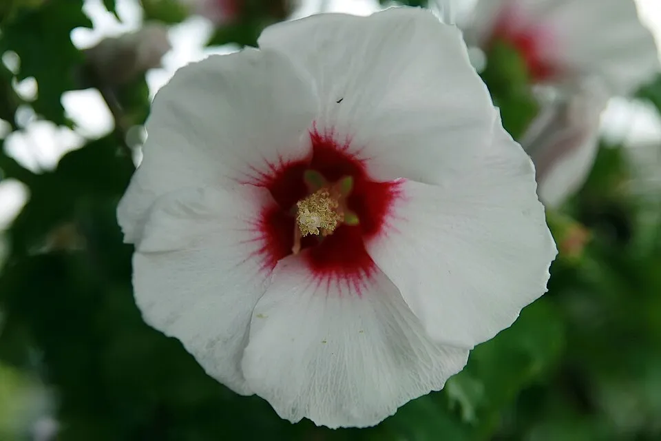 Rózsaszín virágú mályvacserje, bordó torokkal / Hibiscus syriacus 'Minerva'