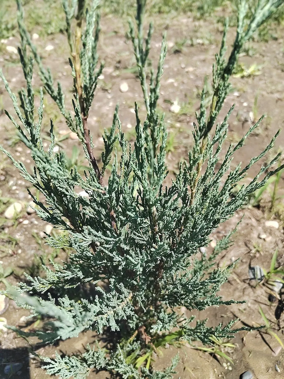 Gyors növekedésű, kecses, oszlopos habitusú örökzöld, 3-5 méter magasra nő. Acélkék pikkelylevelei, télen lilás árnyalatot kapnak. Napfényes, félárnyékos helyet kedvel, talajban nem válogat. Szoliternek, örökzöld csoportokban is jól mutat.