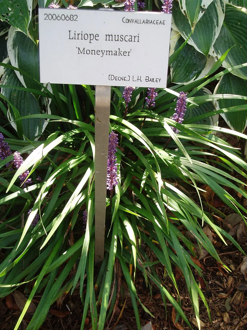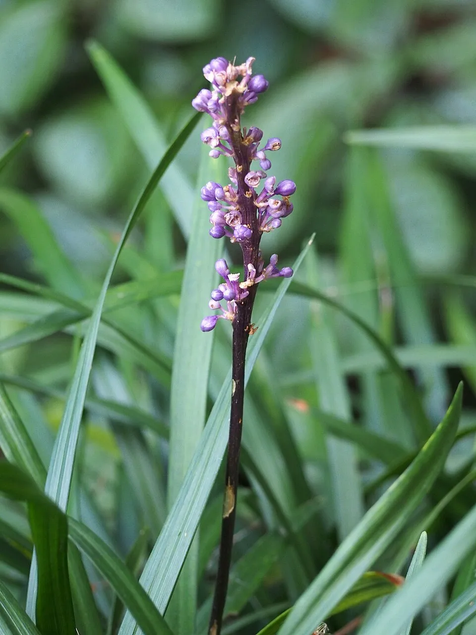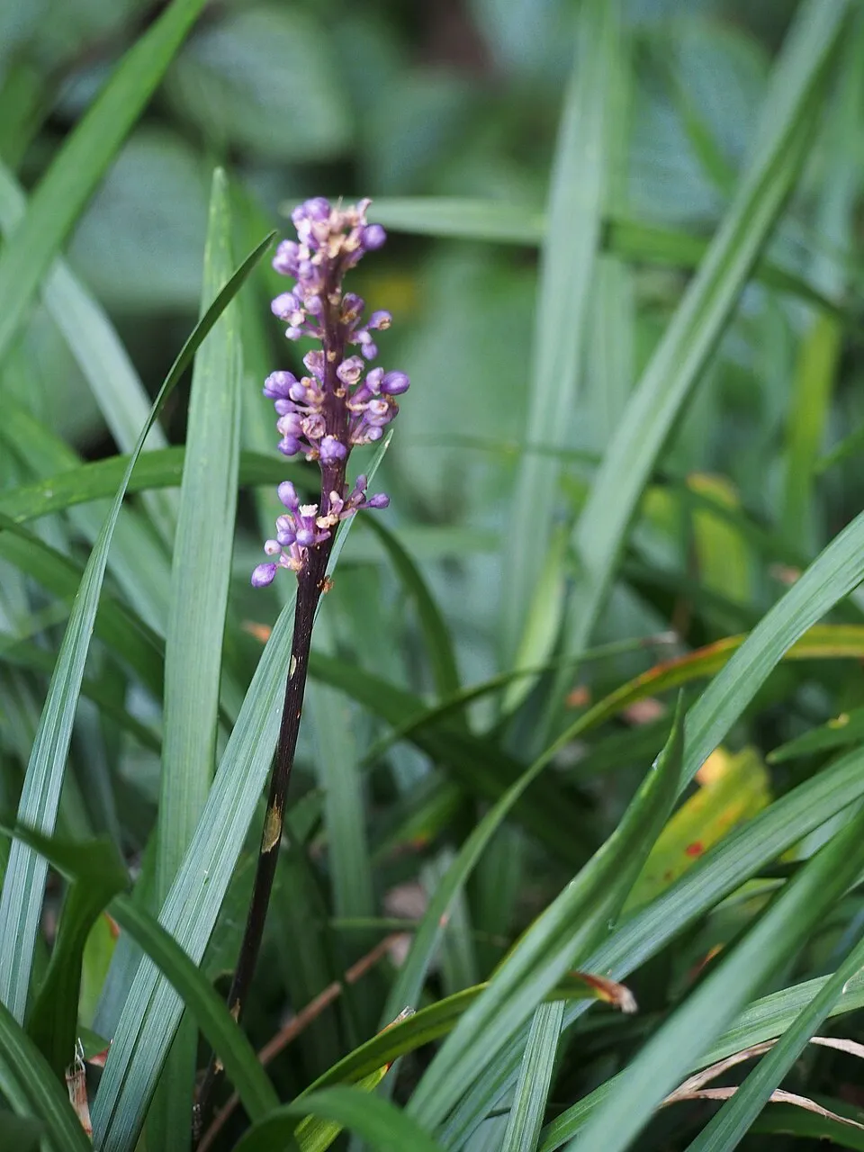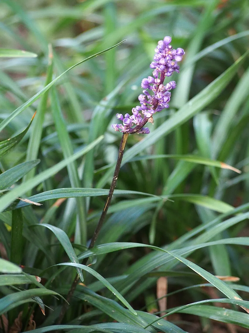 30-40 cm magas, alacsony örökzöld. Március közepére a csúnya leveleket és a kifakult virágokat a föld felett 5 cm-re le lehet vágni, áprilisra új levelek jelennek meg. Fürtös lila színű virágait augusztus-októberben hozza, viszonylag nagy virágokkal rendelkezik a többi Liriope-hoz képest. Alkalmas talajtakarónak, tulajdonságai miatt az egyik legértékesebb talajtakaró lehet a kerted mély árnyékos területein is, de ebben az esetben gyérebb virágzásra számíthatunk. Talajjal szemben nem válogatós, rendkívül jól viseli a szárazabb körülményeket és a cserjék konkurenciáját is.