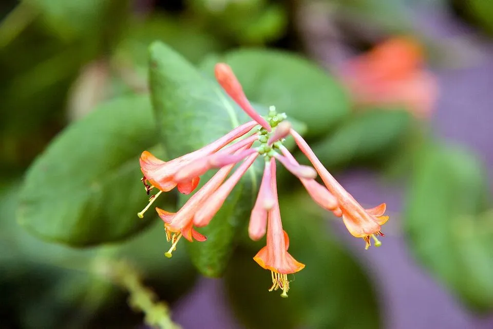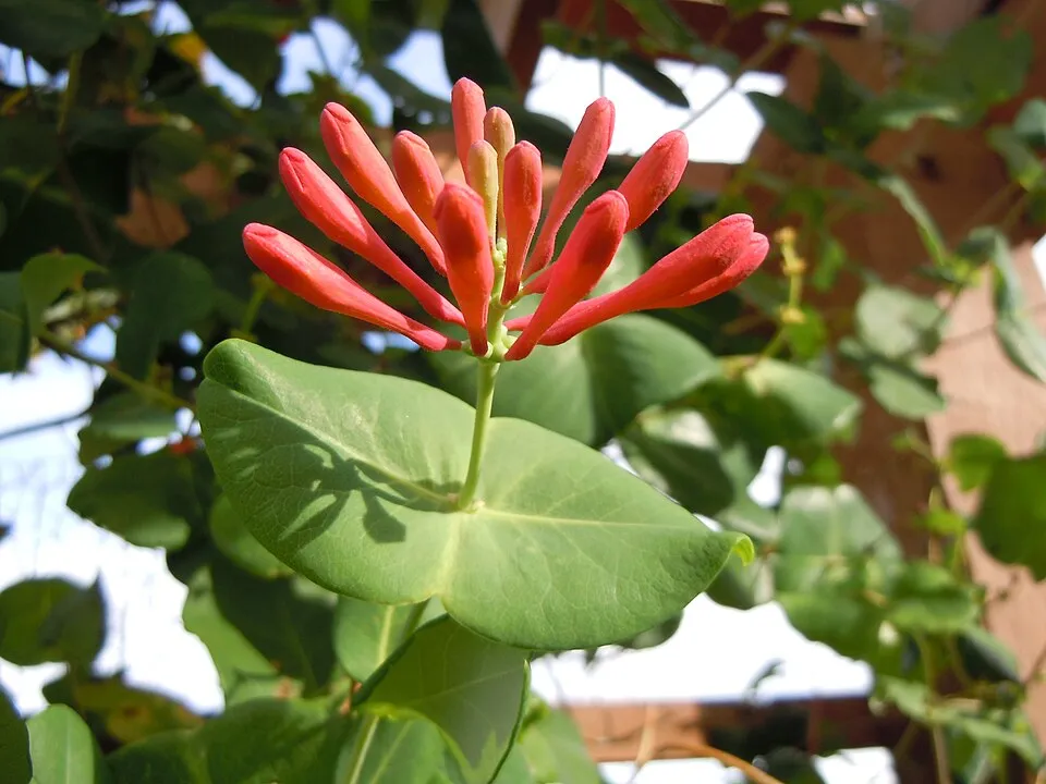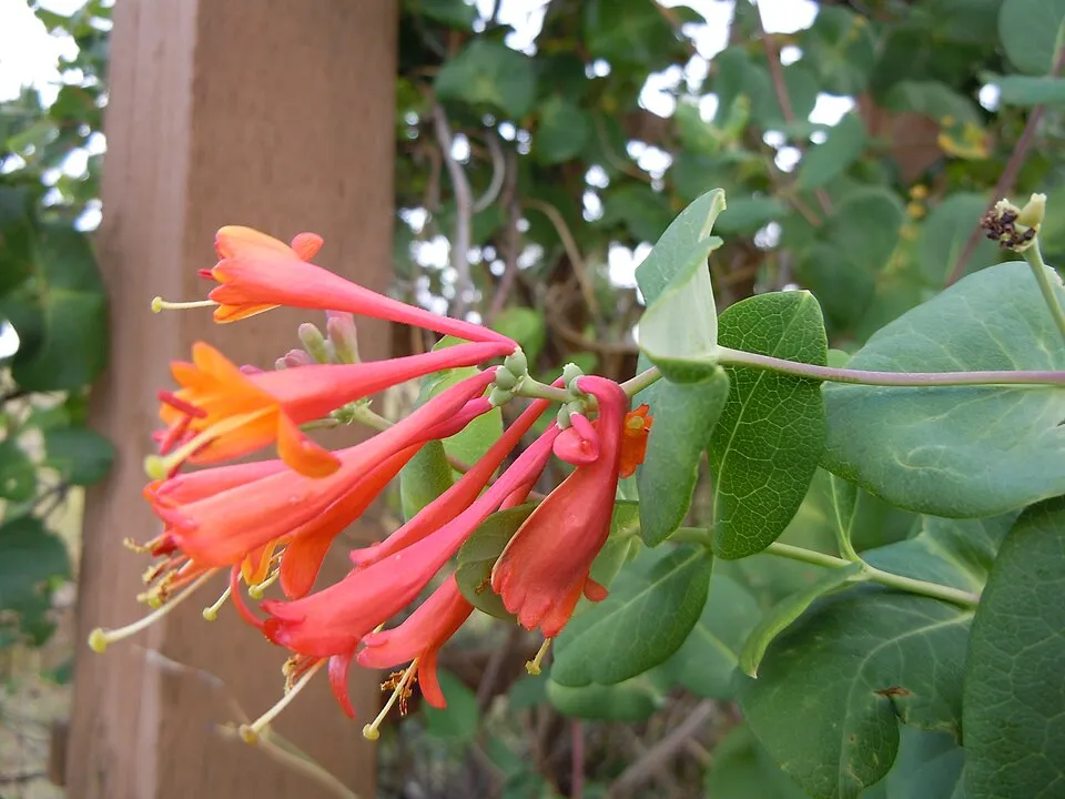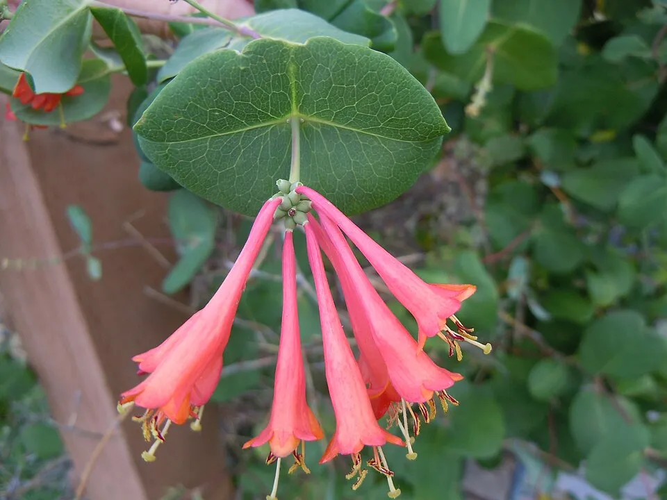 Skarlátvörös színű trombitalonc / Lonicera x brownii 'Dropmore Scarlet'