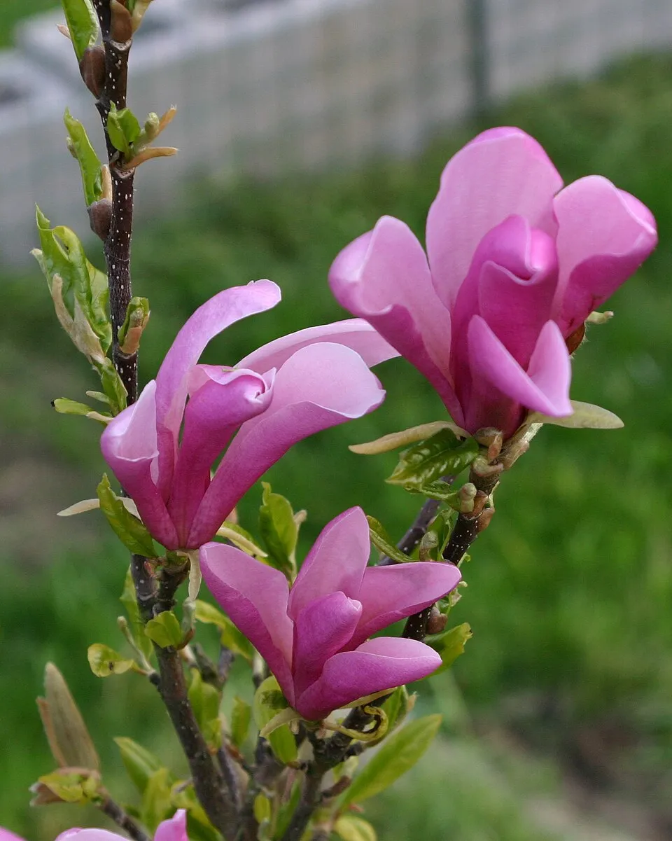 2-3 m magas gömbölyded, lombhullató cserje, vagy kis fa. Virágai kívül bíborrózsaszín, belül világosabb, V alakúak, lombfakadással együtt, április-májusban nyílnak. A kert napos vagy félárnyékos részébe, humuszban és tápanyagban gazdag, jó vízáteresztő, lehetőleg savanyú kémhatású talajba ültessük. Meszes talajba ültetve a levelek előbb sárgulni kezdenek, majd a növény elpusztul. Teljesen télálló, ellenálló fajta. Napos vagy félárnyékos, szélcsendes, védett helyet kedvelik. A magnólia fa vagy más néven liliomfa az egyik legszebb tavasszal nyíló díszfa, amely hatalmas bíborrózsaszín virágaival már messziről vonzzák a tekintetet.