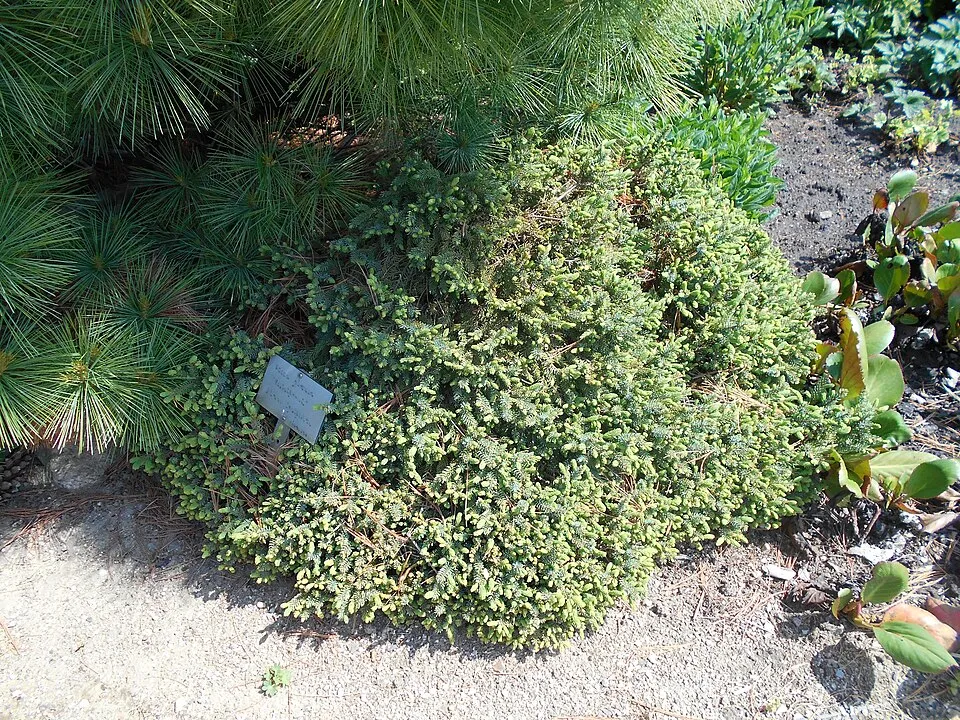 30-60 cm magas és széles törpefenyő, kissé szürkészöld lombozattal. Igazi törpefenyő, növekedésére az évi 6-8 centiméteres növekedés a jellemző. Alakja szabályos, széles, nagyon tömött kúp alakú, átláthatatlan felülettel. Tűlevelei nem szúrnak, dörzsölésre kellemes illatot árasztanak magukból. Kissé vízigényes. Napos vagy félárnyékos helyre ültessük. Meszes talajt nem kedveli, nem fagyérzékeny. Sziklakertbe, kőedénybe is egyaránt ültethető.