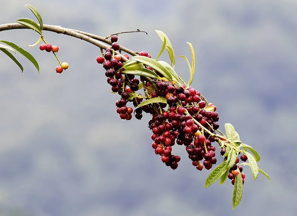 4-6 méter magasságot elérő örökzöld cserje, amely, szabályos gömb alakot nevel. Sűrűn elágazó hajtásrendszerű, levelei fényesek, tojásdadok. A friss hajtások barnás-piros árnyalatúak. Virágai május-júniusban nyílik, gyertyához hasonló, fehér fürtökben. Termése fekete. Napos helyet igényel, de kúszó árnyékban, félárnyékban is jól fejlődik.
