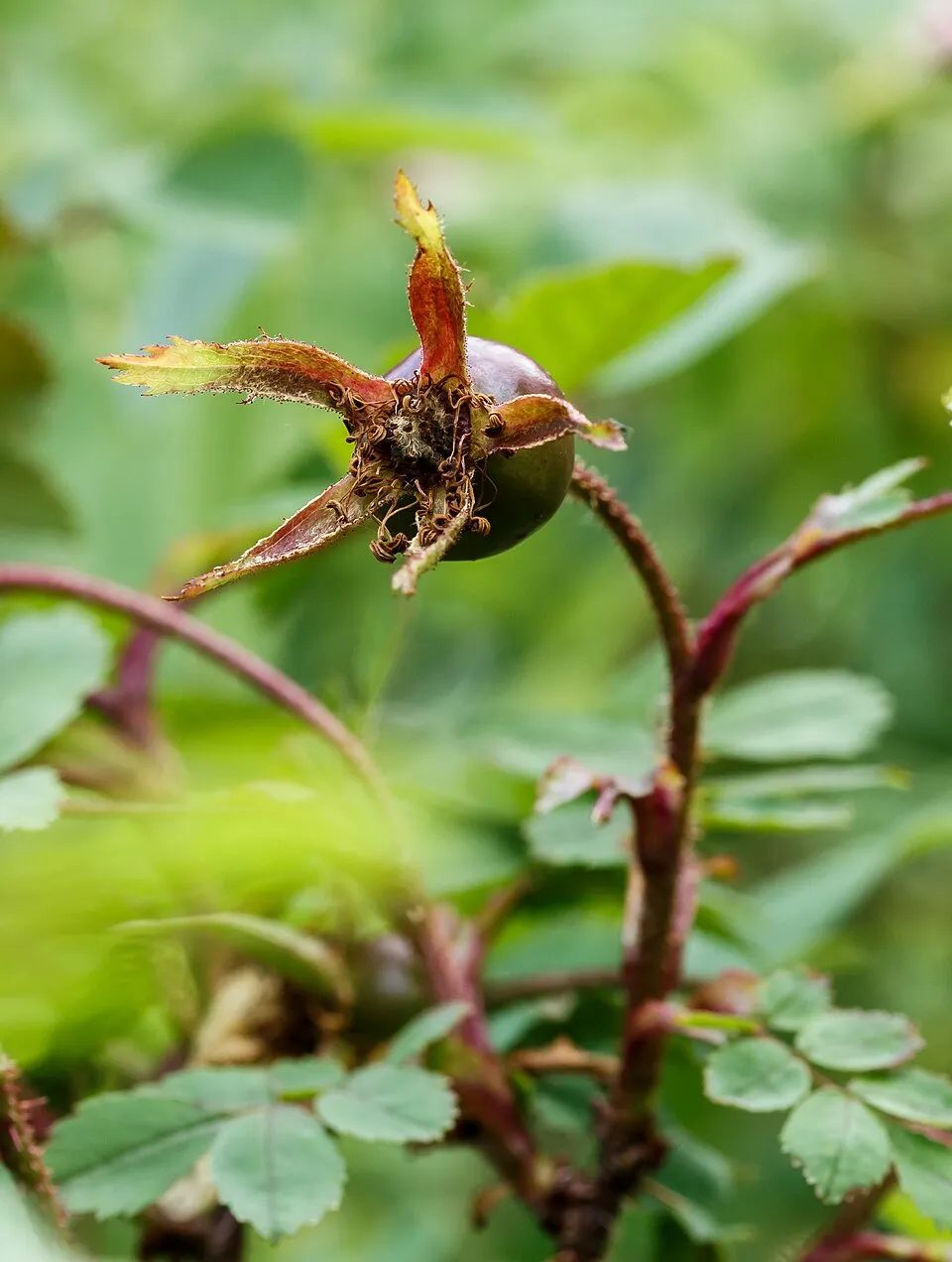 1,5-2 m magasra növő lombhullató cserje. Apró, fehér virágai nyáron jelennek meg, melyekből ősz végére fekete színű csipkebogyó termések fejlődnek. Rendkivűl igénytelen növény, talajban nem válogat. Napos helyre ültessük.
