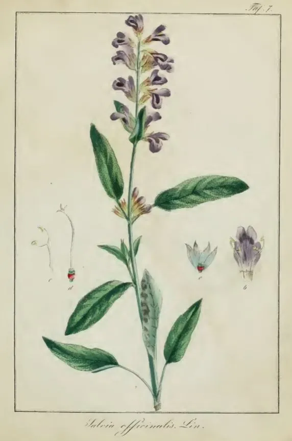 40-60 cm magasra növő örökzöld gyógynövény, amely fűszernövényként is világszerte elterjedt. Kedvező hatását annyiféle betegség ellen találták jótékonynak, hogy egyenesen ‘csodaszernek’ kezdték tekinteni. A fiatal hajtások négyszögletesek, szürkészöld színűek, szőrözöttek. Levelei tojásdad vagy lándzsa alakúak, keresztben átellenesek, szélük csipkés, a csúcsuk tompa. A fiatal levelek szürkésfehérek, idősebb korra válnak szürkészölddé a levéllemezt borító szőrképletek miatt. Erezetük a felszínen kiemelkedik, a fonákon bemélyed. Virágai hármasával-négyesével álfüzérben örvösen állnak a hajtások csúcsán. A párta 2-3 cm hosszú, kétajkú. A családra jellemzően a négy porzó közül csak kettőn van portok. A szirmok színe általában ibolyás kék, ritkán rózsaszín vagy fehér. Júniusban-júliusban virágzik. napos helyen érzi jól magát.