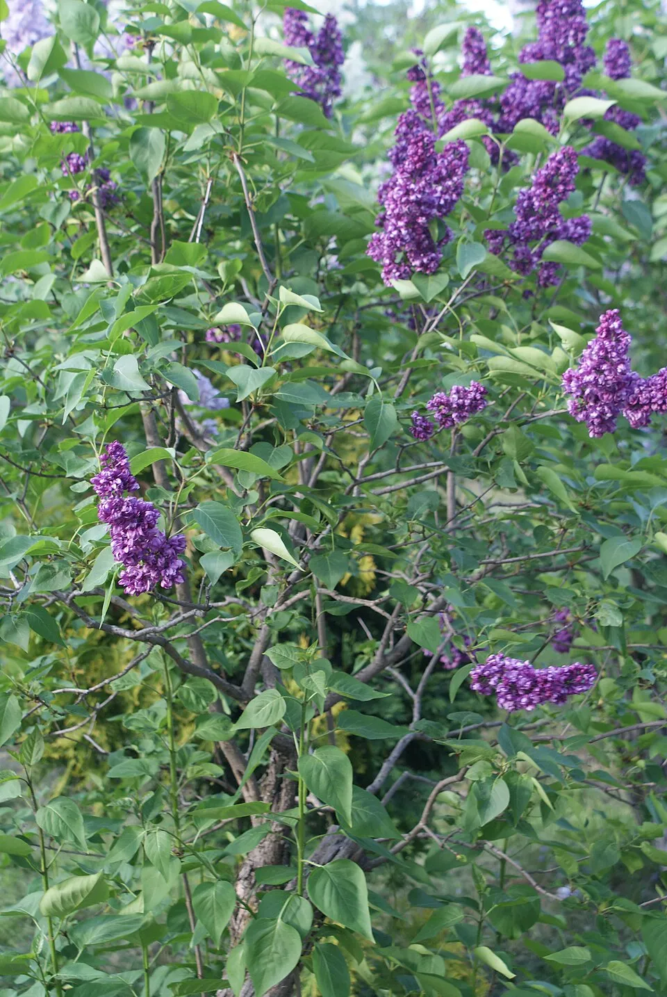 4-6 m magas és 3-5 m széles, felfelé törő növekedésű, lombhullató nagy bokor vagy kis fa. 20 cm hosszú, tömött, keskeny bugákban bíborlila telt virágait április-májusban hozza. Kellemes illatú és nagyon szép. Napos vagy félárnyékos helyre ültessük. Átlagos vízigényű. Jól tűri az aszályt és a városi környezetet.