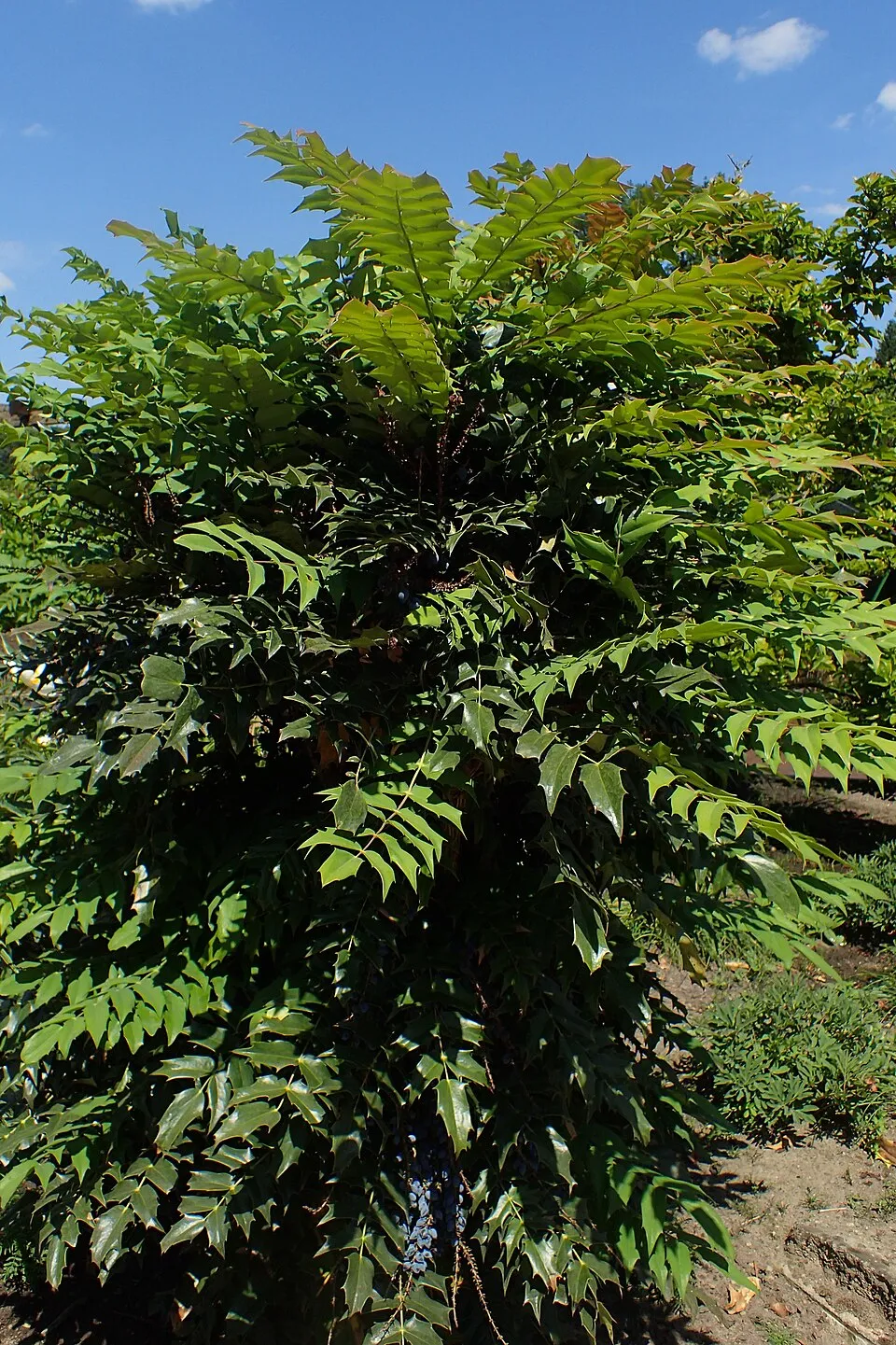 1–1,5 m magas, lapított gömb alakú, örökzöld borbolya. Levelei fényesek, barnás-vöröses árnyalatúak lehetnek, hidegben bronzosodhatnak, így egész évben dekoratív. Tavasszal sárga virágokat hoz, később bogyókkal is díszíthet. Napos vagy félárnyékos helyen érzi magát a legjobban, jó vízáteresztő talajt kedvel. Szárazságtűrő, de a pangó vizet és a tartósan kötött, levegőtlen talajt kerülni kell. Szegélynek, alacsony sövénynek, örökzöld foltnak ideális.