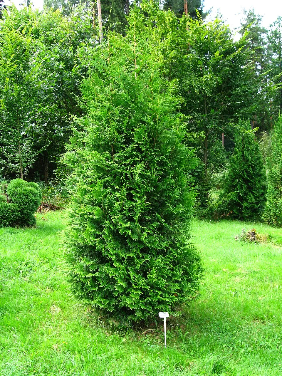 10-12 m magas, szabályos kúp koronájú örökzöld. Pikkely levelei világoszöldek, amely télen kissé bebarnul. Viszonylag gyorsan nő. Elsősorban sövénynek ültetik, e célra mind nyírott, mind szabadon növő formában alkalmas. Talajban nem válogatós, rendszeres locsolást és a megfelelő tápanyagozást gyorsabb növekedéssel meghálálja. Éves növekedése megfelelő körülmények között 40-60 cm. A forró, aszályos nyarakat, a szárazságot rosszul tűri.