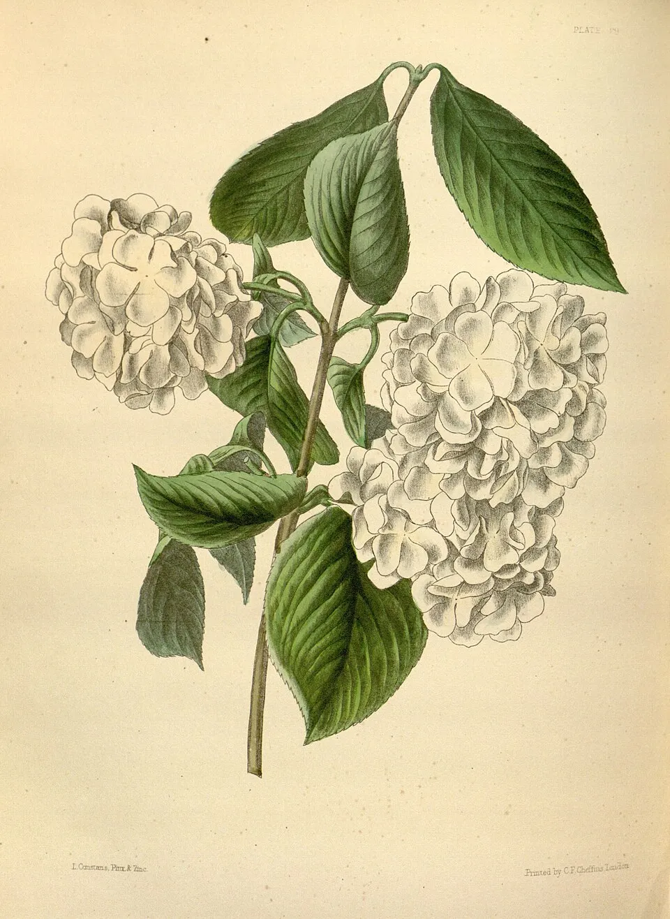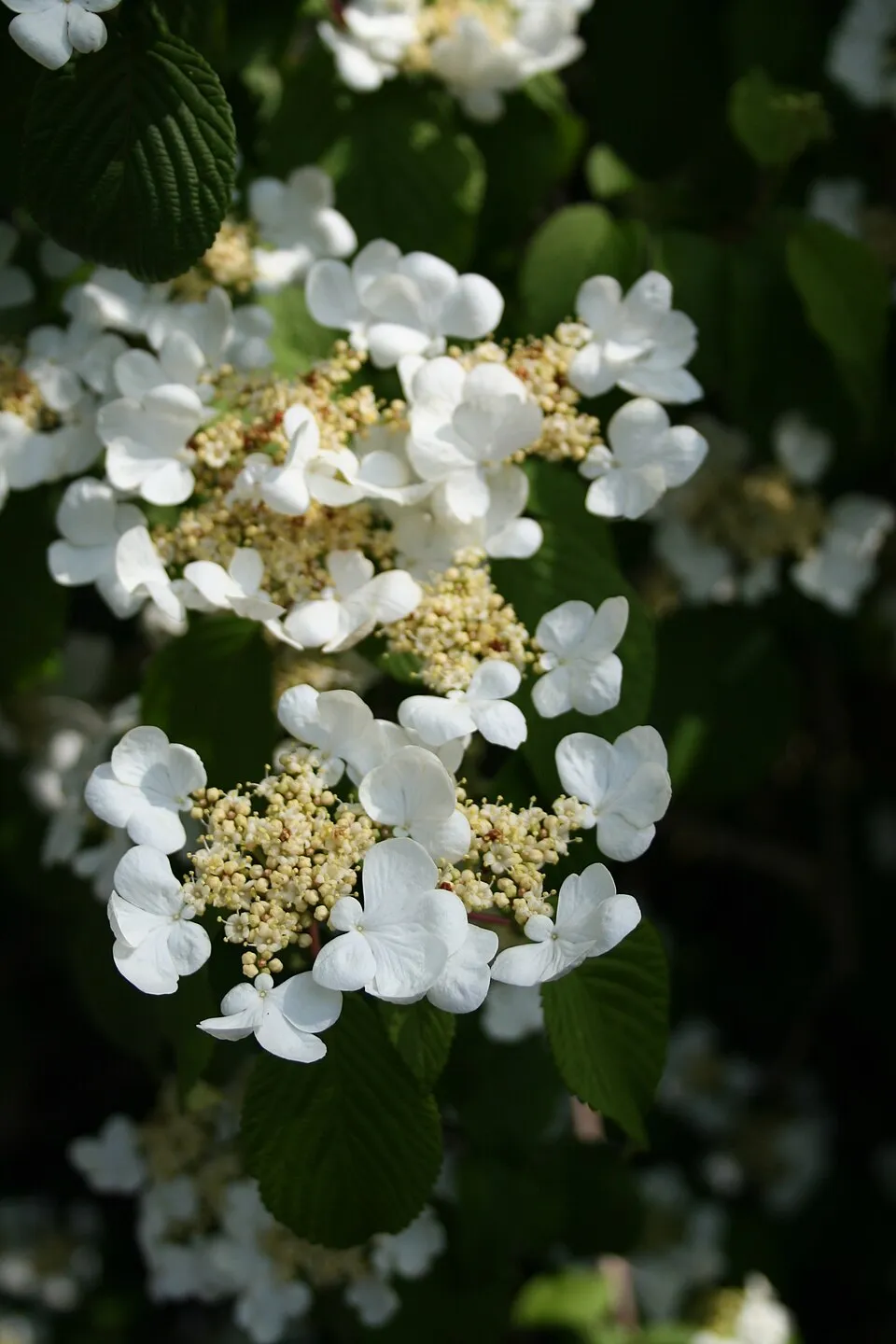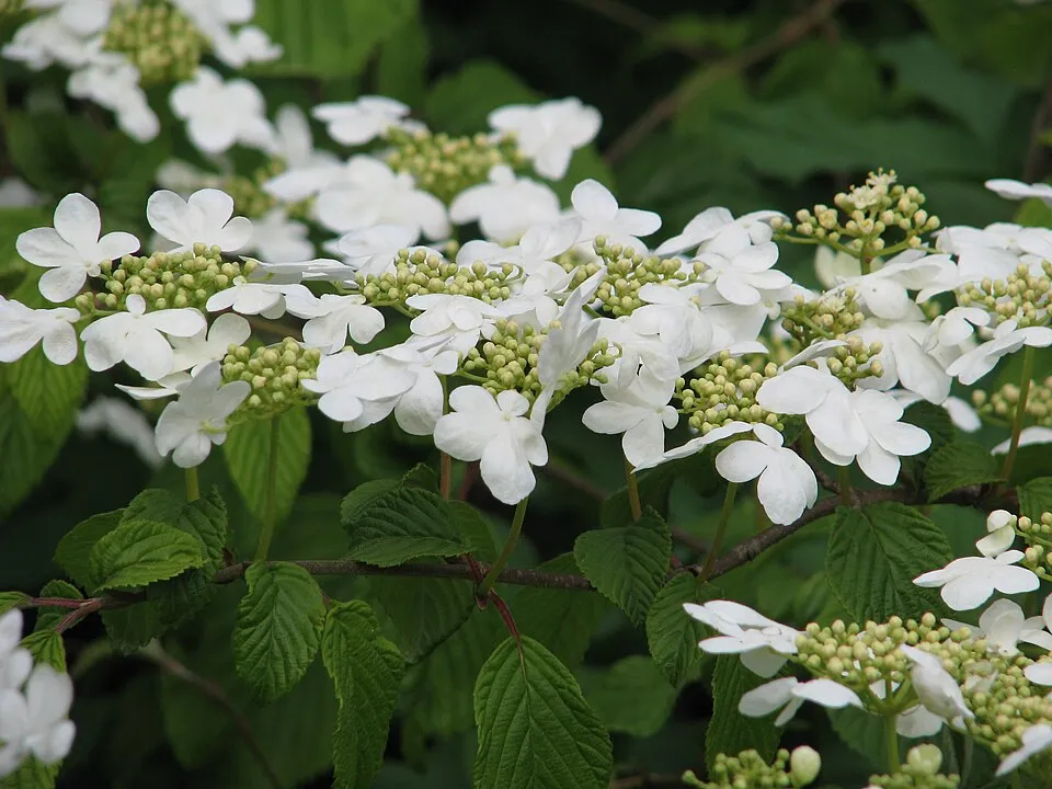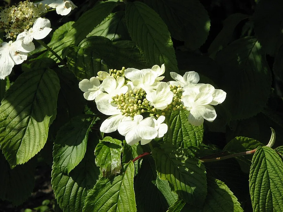 Fehér-rózsaszín virágú, redős bangita / Viburnum plicatum 'Kilimanjaro Sunrise'