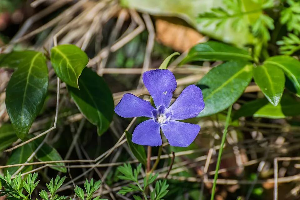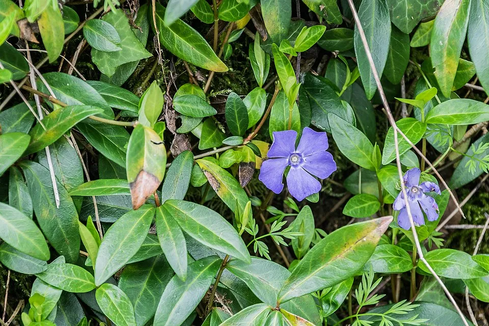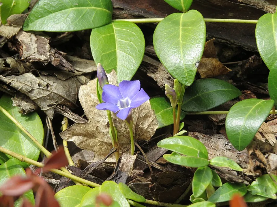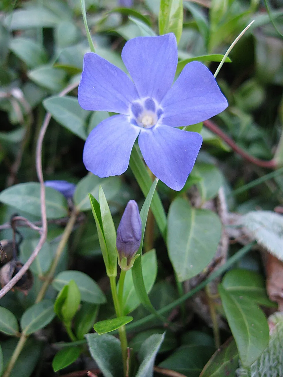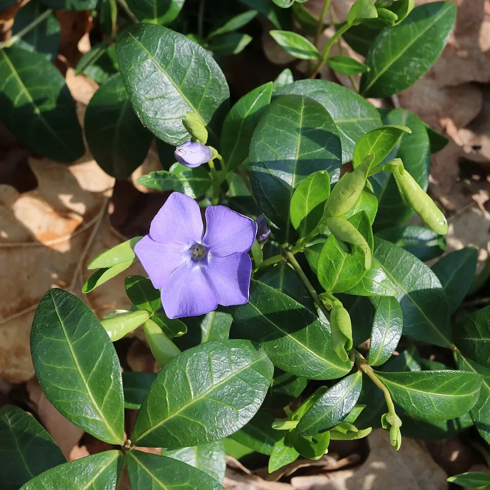 10-15 cm magas, elfekvő legyökeresedő szárú, örökzöld cserje. Levelei 5 cm-es, elliptikus-hosszúkás, mindkét végén hegyes, épszélű, sárgatarka. Virága 3cm átmérőjű, liláskék, világos torokfolttal, áprilistól-szeptemberig nyílik. Üde, félárnyékos fekvésben kiváló talajtakaró, árnyéki gyeppótló, nyár végén-ősz elején utóvirágzásra is számíthatunk.