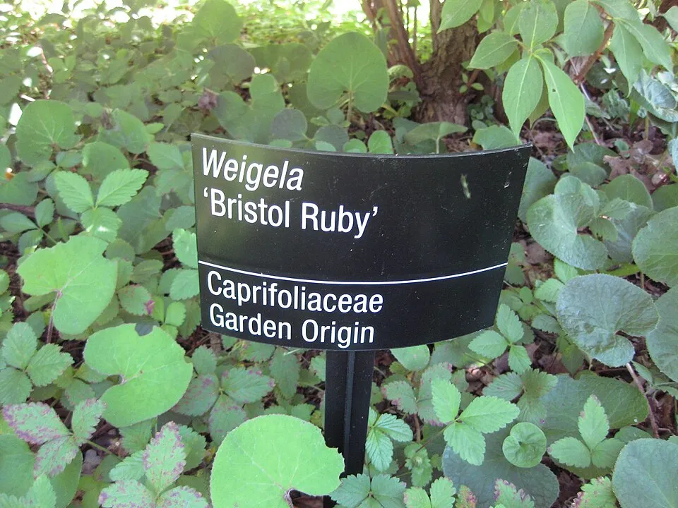 Piros virágú, zöld levelű rózsalonc / Weigela florida 'Bristol Ruby'