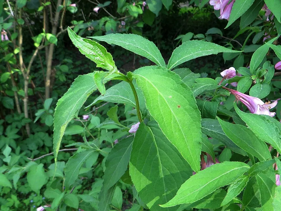 1,5-2 m magas és széles, feltörő növekedésű, sűrű ágú, lombhullató cserje. Levelei széles-elliptikus, kihegyezett, matt sötétzöld, ősszel barnabordó majd élénkvörös. Virága nagy, 3-4 cm átmérőjű, tölcsér alakú, sötétvörös, nem fakuló. Május második felétől nyílik, nyár végén újra virágzik. Üde, jó vízáteresztő képességű, tápanyagban és humuszban gazdag enyhén savanyú vagy semleges talaj ideális a számára. Nagy fényigényű növény, kisebb árnyékolást elvisel.
