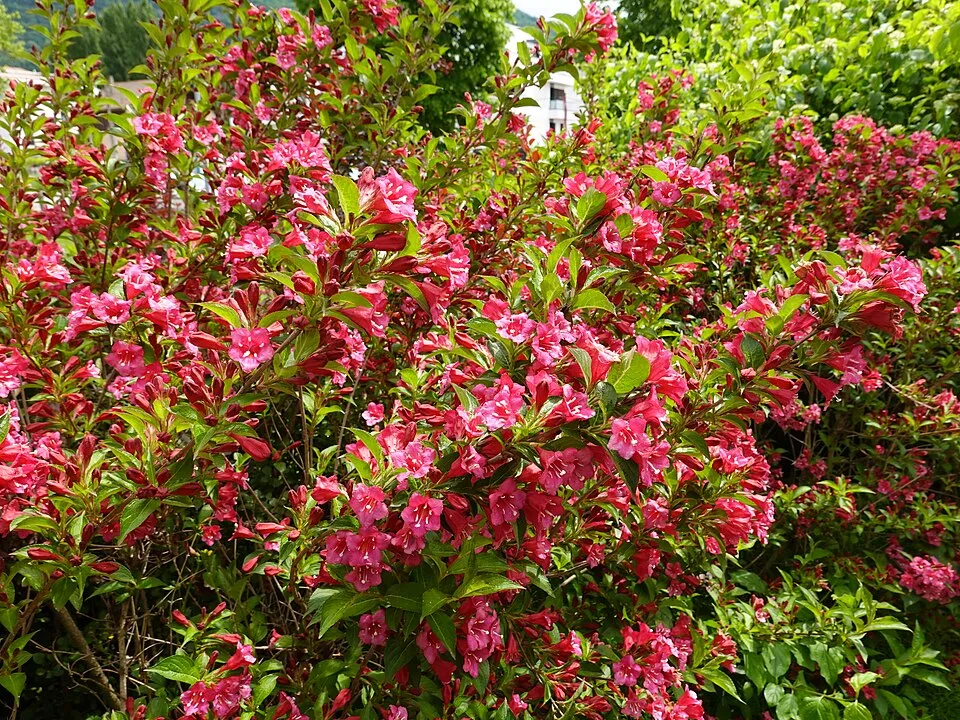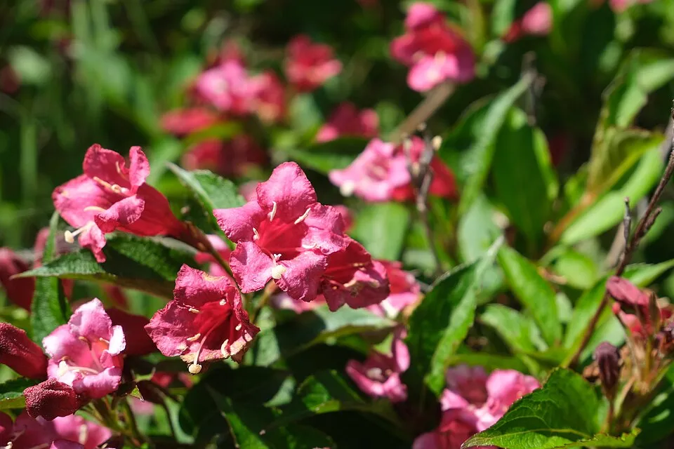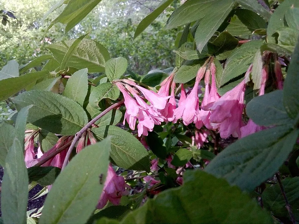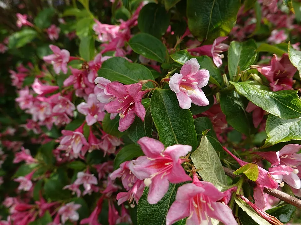 Rózsaszín virágú, zöld levelű rózsalonc / Weigela florida 'Pink Princess'