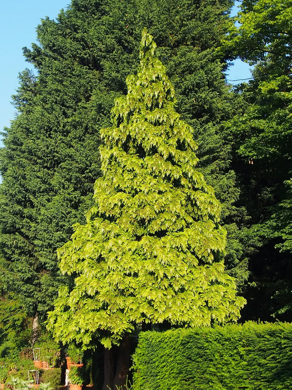Kifejlett magasság, tulajdonság: 6-10m magas, sárga pikkelylevelek.