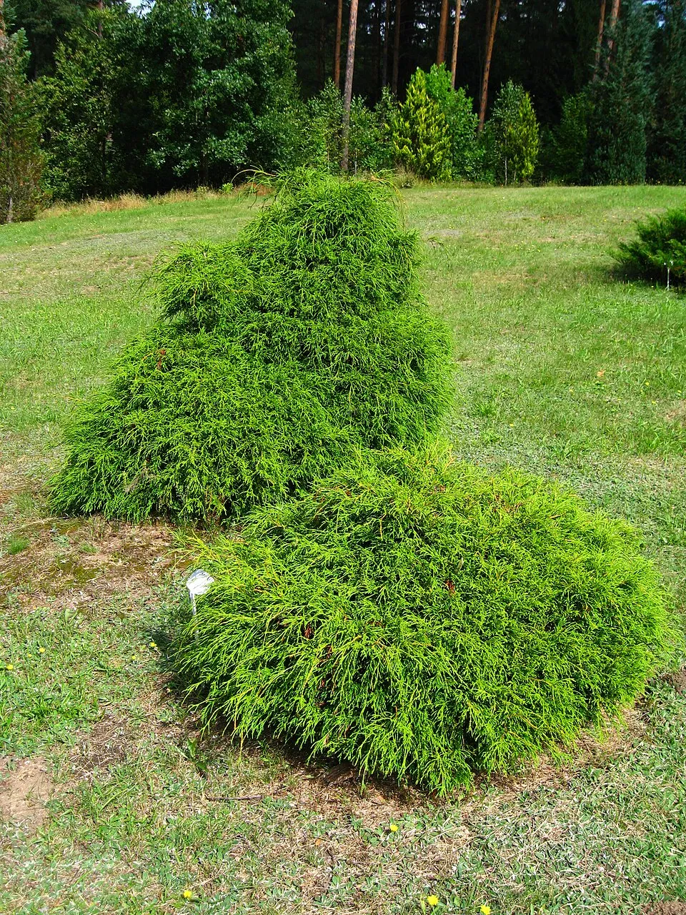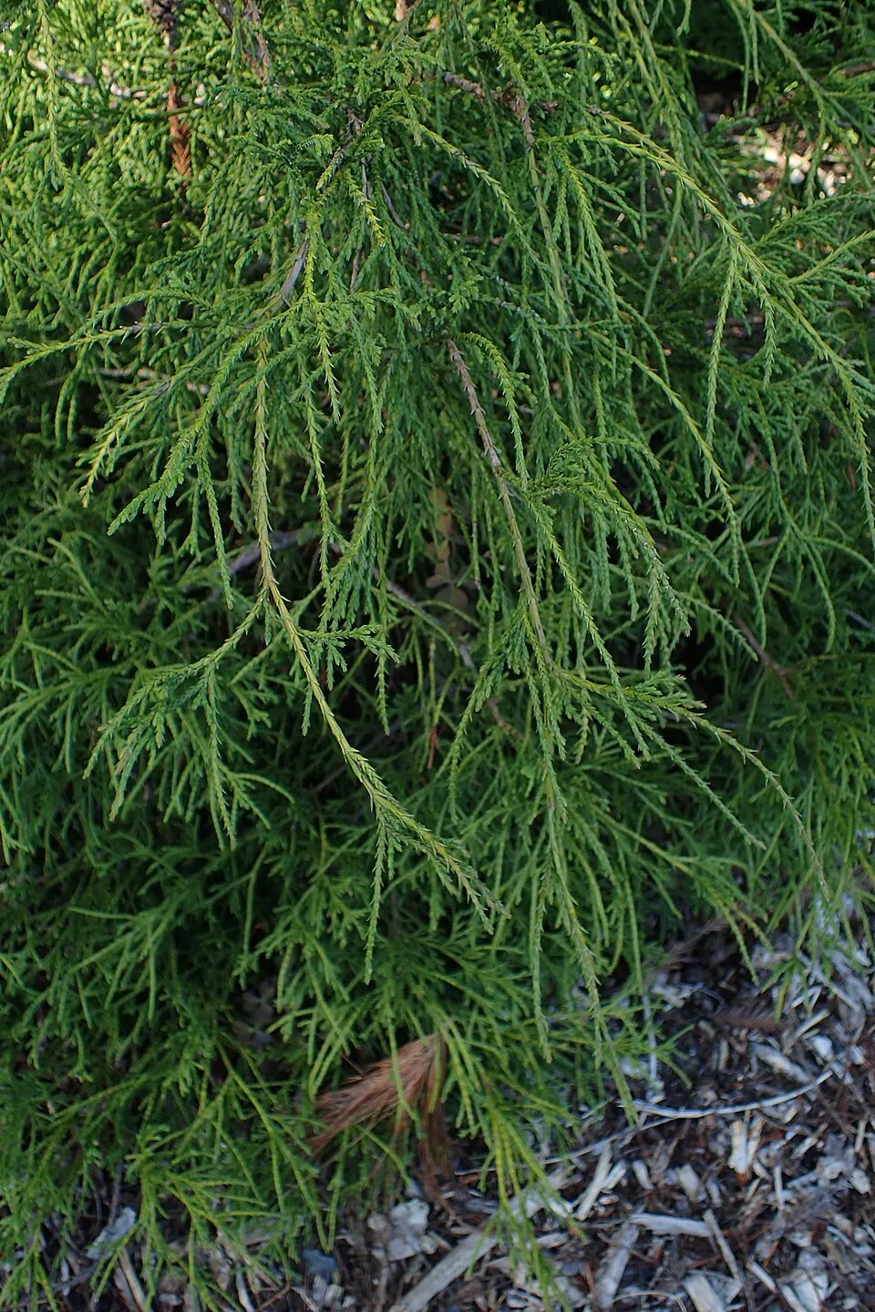50-60 cm magas, törpe, örökzöld dísznövény, amely egész évben díszít. Finom, fonalas hajtásai lágy, párnás hatást adnak. Fényigénye napos–félárnyékos; a friss hajtásszín napos helyen a legintenzívebb, de félárnyékot is elvisel. Jó vízáteresztő; fiatalon rendszeres öntözést igényel. Vízigénye közepes: fiatal korban különösen fontos az egyenletes vízellátás, mulcsozással a talaj könnyebben üde marad. A tartós pangó vizet és a kiszáradást kerülni kell.