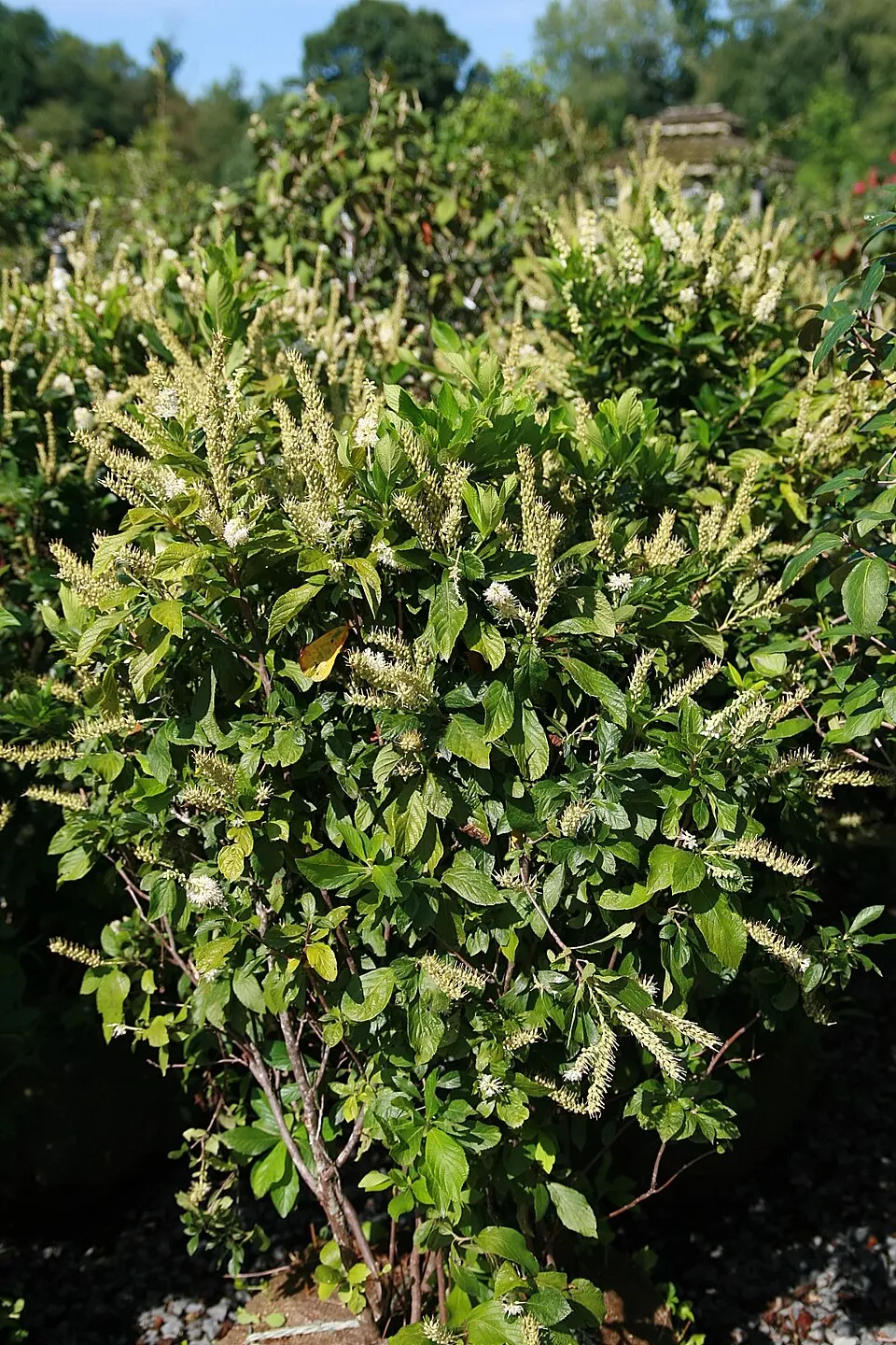 1,5-2,5 m magas, lombhullató díszcserje, amely nyár második felében virágzik, amikor a legtöbb cserje már elvirágzott. Illatos, rózsaszín virágbugái VII–IX időszakban nyílnak, és kiváló méhcsalogatók. Fényigénye félárnyékos–napos; napos helyen is szépen fejlődik, ha talaja nem szárad ki. Savanyú, humuszos, üde; kiszáradást nem tűri. Vízigénye közepes–magas: a kiszáradást nem tűri, mulcsozással sokat javíthatunk a vízháztartáson. Természetes hatású kertekbe, cserjecsoportokba és víz közelébe is remek választás.