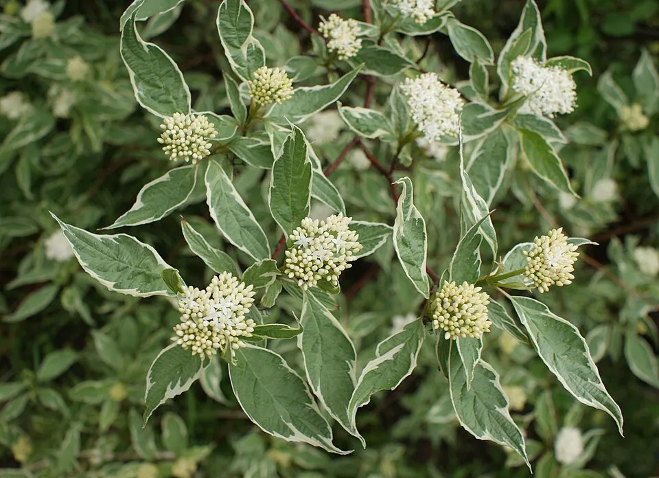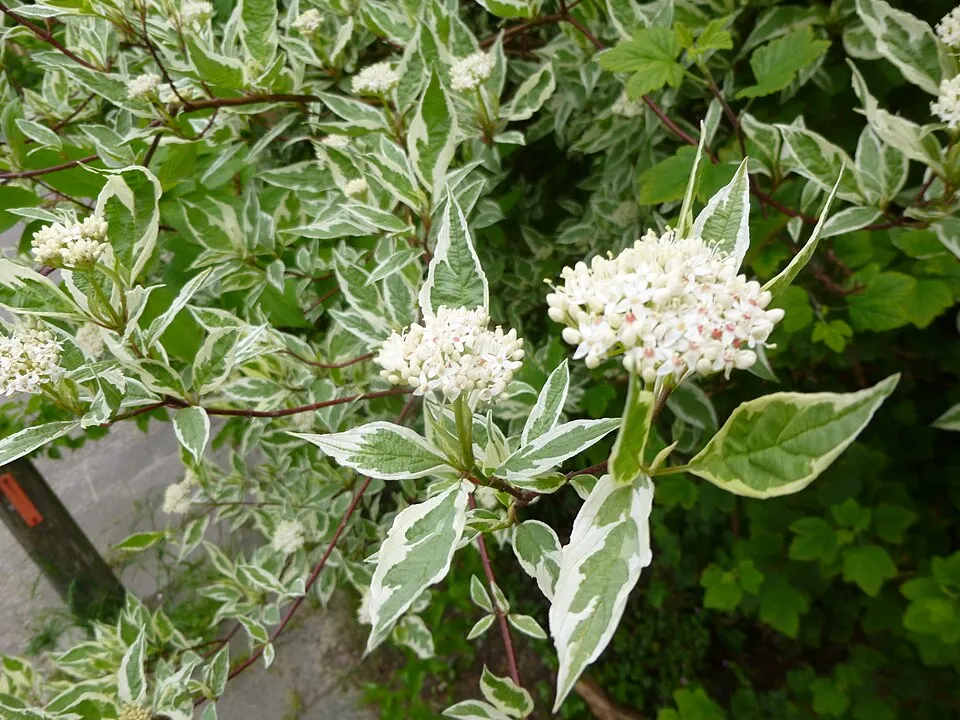 Fehér-tarka levelű, piros vesszejű som / Cornus alba 'Elegantissima'