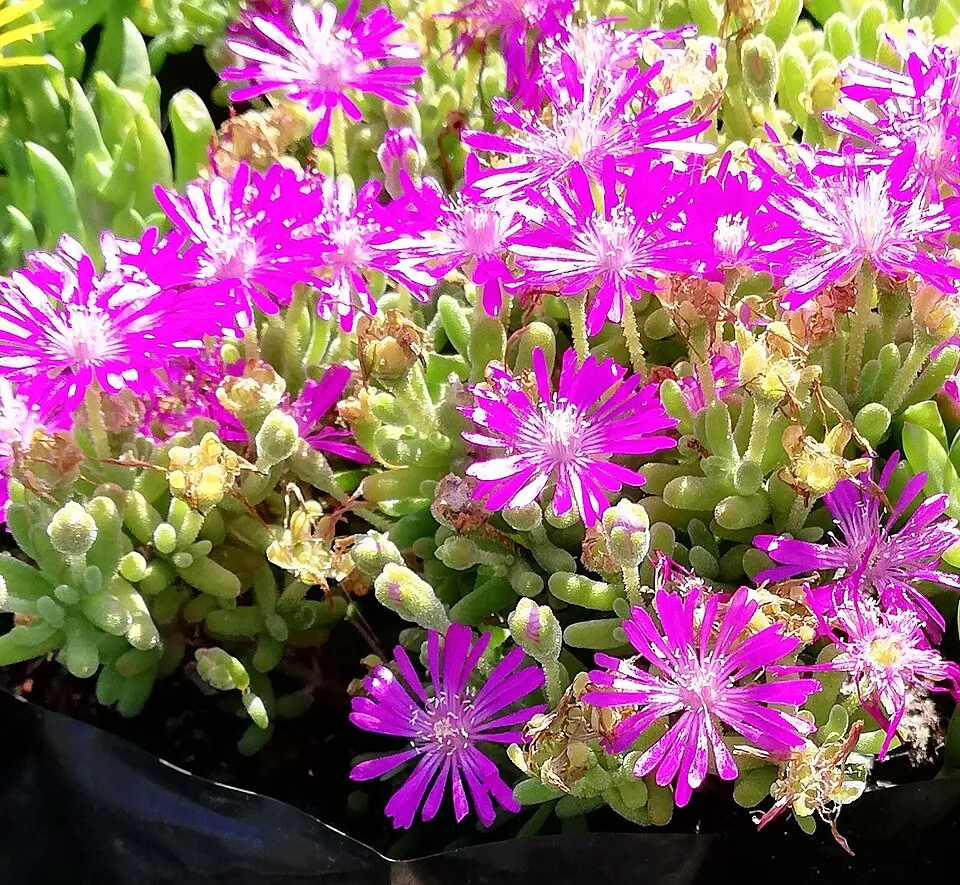 Bíborvörös kristályvirág (Delosperma cooperi OCEAN SUNSET™ 'Orange Vibe') télálló évelő dísznövény; évelőágyásba, szegélybe és nagyobb dézsába is remek választás, és családbarát, könnyen gondozható választás. Jól társítható más évelőkkel; formája és színe szépen rétegzi az ágyás szerkezetét. A(z) V-VIII időszakban virágzik; narancssárga virágai üde színfoltot adnak, és a beporzó rovarok számára is vonzóak. Napos fekvésben mutat a legszebben; jó vízáteresztő, tápdús talajban gyorsan beáll és erős tövet nevel. Ültetés után tartsd egyenletesen nyirkosan a talajt, később az időjárás szerint öntözd; mulcsozással csökkenthető a kiszáradás és a gyomosodás. Elvirágzás után a visszavágás és az elszáradt részek eltávolítása rendezett megjelenést ad, és sok fajnál újabb virágzási hullámot is ösztönözhet.