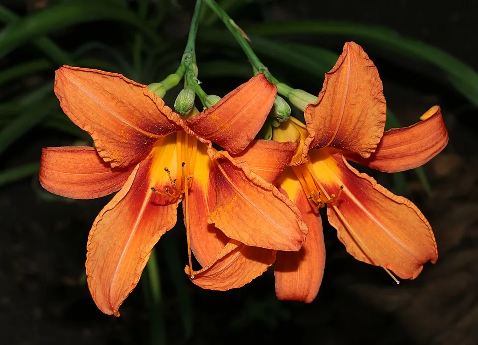 Virág színe: narancssárga, vörös szem, sárga torok